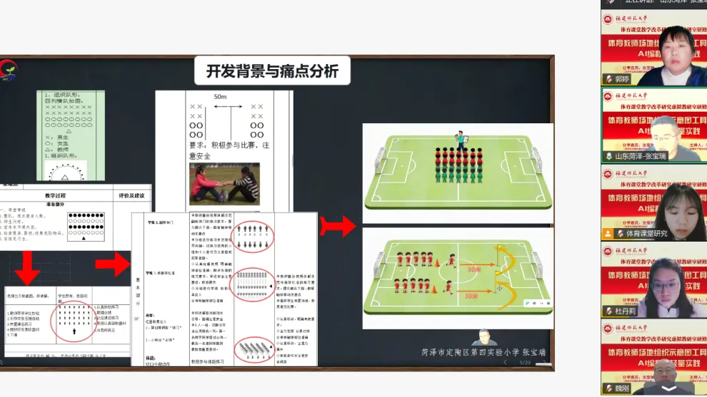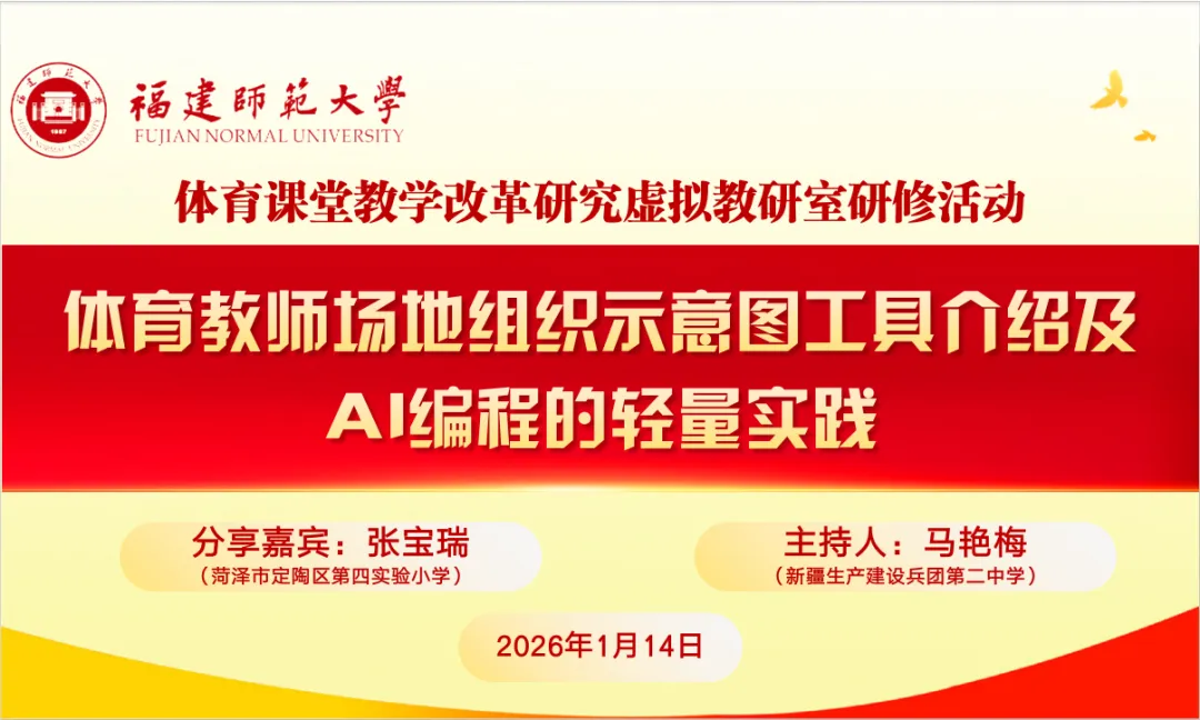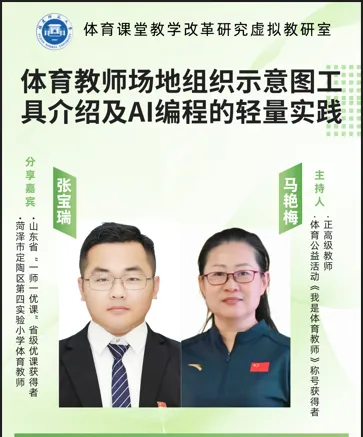 当实用教学工具遇上前沿 AI 技术,体育课堂能迸发怎样的活力?1 月 14 日晚,郭婷名师工作室全体成员齐聚云端,全程参与「体育教师场地组织示意图工具介绍及 AI 编程的轻量实践」线上直播活动,沉浸式解锁了让备课 “化繁为简” 的硬核技巧,共同探索体育教学创新的新路径。