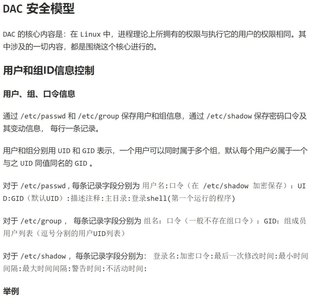 以下是对用户和组信息的举例。 /etc/shadow 中的口令信息为加密存储,不举例。