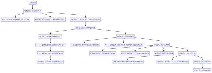 为定位磁盘写 I/O 的来源及与 Redis 延迟的关联,我们借助 Linux 系统层性能排查工具集(pidstat、strace、lsof、nsenter 等),按“进程定位→操作追踪→关联分析→环境确认”的思路逐步缩小范围,最终锁定两大核心问题。
