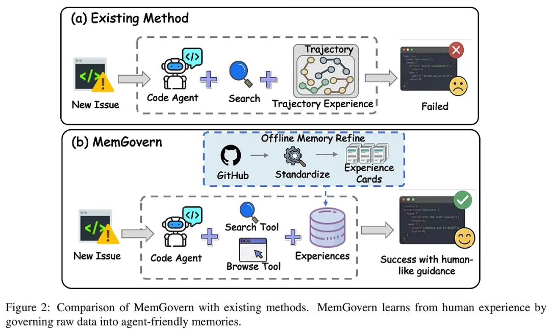 本研究旨在打破“闭环世界”限制,通过构建一个名为MemGovern的经验治理框架,将原始GitHub数据转化为结构化、代理友好的经验记忆,赋能代码代理利用历史人类调试智慧,提升自动修复的准确率和效率。