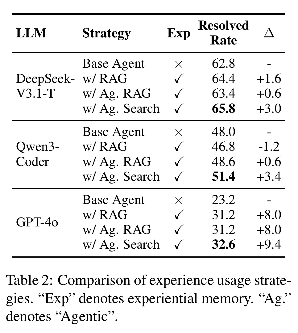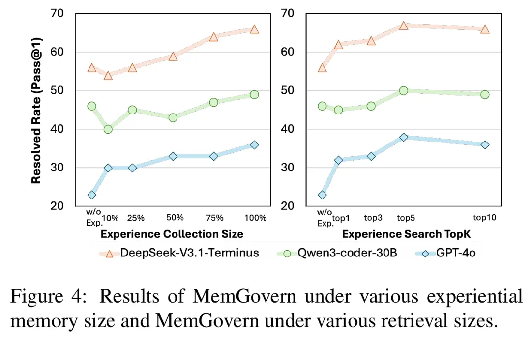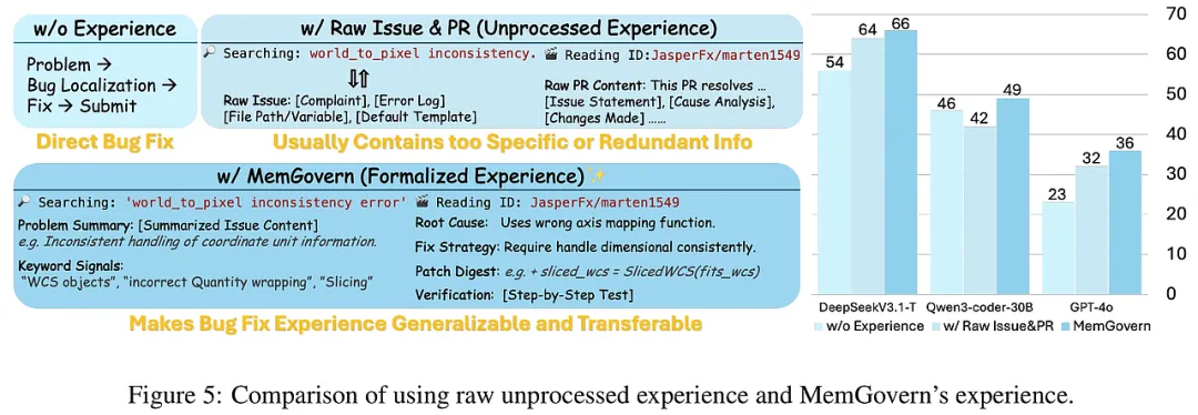 - 经验质量影响:与未治理的原始PR和补丁数据相比,标准化且经质量控制的经验卡片带来更稳定且显著的性能提升,体现治理流程的核心价值。