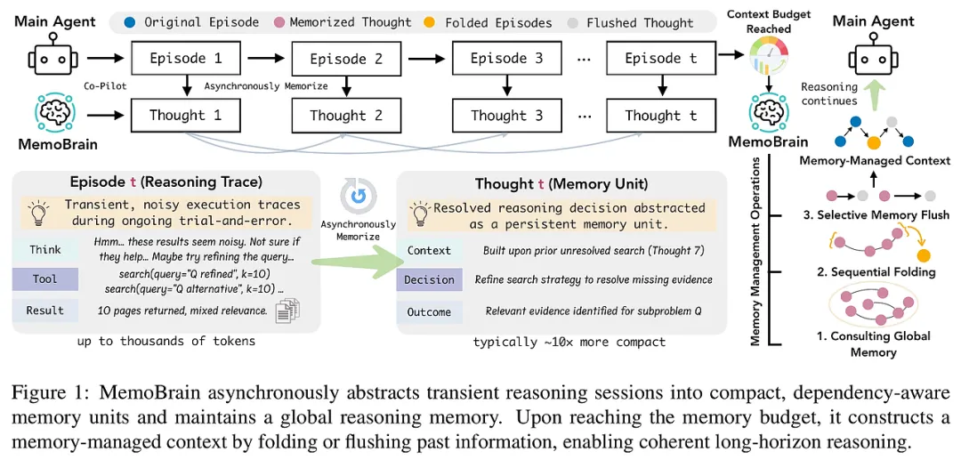 这一方法将记忆从被动的上下文缓存转变为主动的认知控制机制,实现了对推理过程的全局感知和动态调节,显著提升了长时序推理的连贯性和效率。