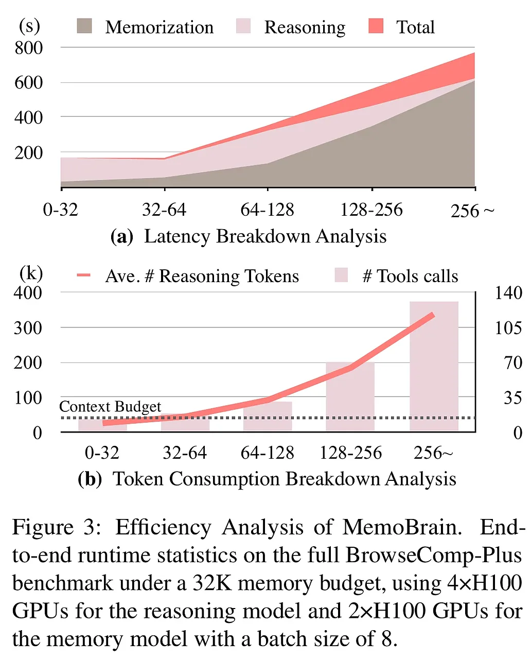 上下文预算敏感性:在不同上下文预算下,MemoBrain均能有效利用资源,提升推理的上下文利用率和工具调用效率,显示出良好的扩展性。