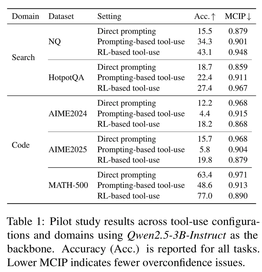 - 工具集成推理表现:在数学推理任务中,CAR同样带来校准与性能的双重提升,表明该方法不仅适用于信息检索场景,也适合执行复杂逻辑推理的工具集成智能体。