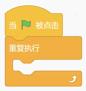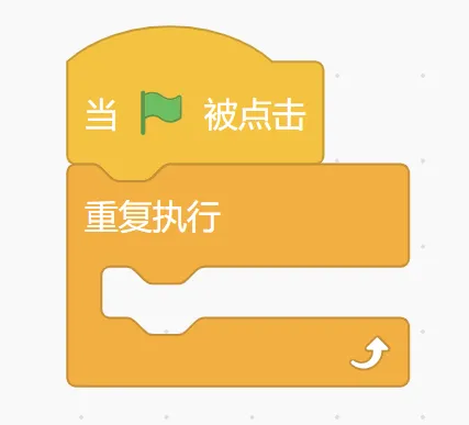 将这个条件判断代码块放入“重复执行”代码块中,用于检测角色是否接触到边缘。
