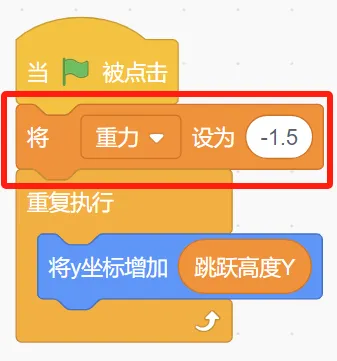 这里的“跳跃高度”变量设为负值,用于模拟重力效果。这个值决定了角色下落的速度。