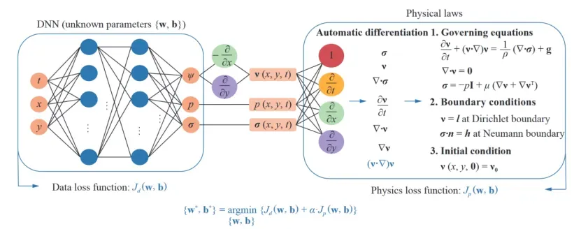 近年来,物理信息神经网络(Physics-Informed Neural Networks, PINN)成为计算科学与人工智能交叉领域的前沿方向。传统数值方法(如有限差分法、有限单元法)在高维、强非线性或反演问题中面临计算效率低、网格依赖性强等瓶颈。PINN通过将控制方程、边界条件等物理先验嵌入神经网络,以无网格方式实现微分方程求解,在流体力学、固体力学、传热学等领域展现出突破性潜力。其核心论文(引用超13,000次)开创了物理驱动深度学习的范式,成为Nature、CMAME等顶刊的研究热点。