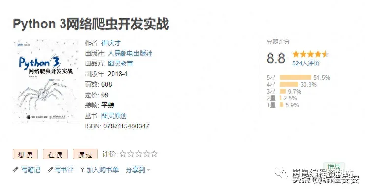 大家好,今天要给大家推荐一本非常热门且实用的书籍——《Python 3网络爬虫开发实战》!这本书籍绝对是Python 爬虫领域的瑰宝,手把手教你从零开始,掌握网络爬虫的各种核心技能!