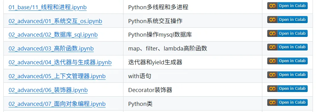 这部分属于进阶内容。如果已经掌握Python基础语法,想系统深入学习,可重点关注;若仅以入门为目标,完全可以暂时跳过。核心内容包括数据库操作、高阶函数、迭代器、面向对象编程及配套用例。