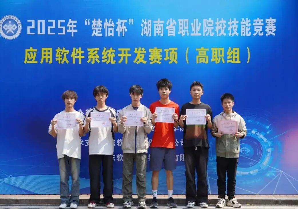 2025年3月,在“楚怡杯”湖南省职业院校技能竞赛的赛场上,张俊康与团队成员默契协作,从容应对需求分析、系统设计、开发实现与部署测试全流程,最终以显著优势荣获应用软件系统开发赛项一等奖,成功晋级全国赛场。