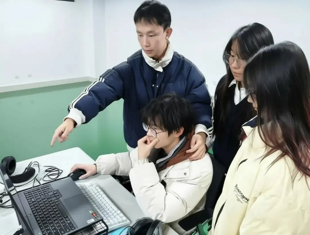 备赛期间,学校及学院领导多次到竞赛室关怀鼓励,指导老师团队全程陪伴、悉心点拨,队友之间更是彼此支撑、共同攻坚。深夜的实验室里,键盘声与讨论声交织,凝聚成一股向上的力量。“我不是一个人在战斗。”张俊康常常感慨,“是团队托举着我,一步步向前。”正是这份集体的支持与个人的坚持,让他们最终在省赛中凭借近乎完美的表现拔得头筹,并在国赛面对全新挑战与高压环境时,依然能够沉着应战、稳定发挥。