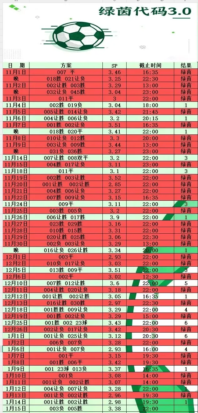 1月15日绿茵代码3.0计划 今日已更新