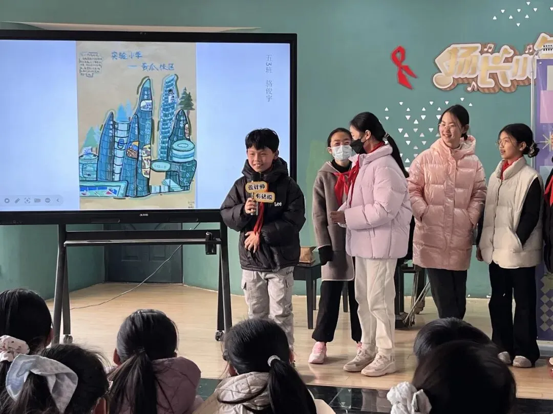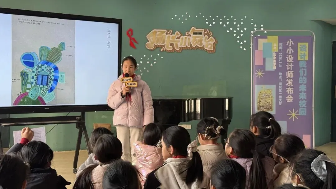 而就在活动前一周,学校还特别为这些小设计师们举办了一场创意发布会。同学们自信地站在台上,介绍自己的设计理念,展示从手绘草图到动态效果的全过程。目前,所有精彩作品正在同步展览中——大厅里展示着原汁原味的手绘稿,而校门口的电子大屏上,则循环播放着它们“活”过来的模样,路过的师生、家长们都忍不住驻足赞叹!