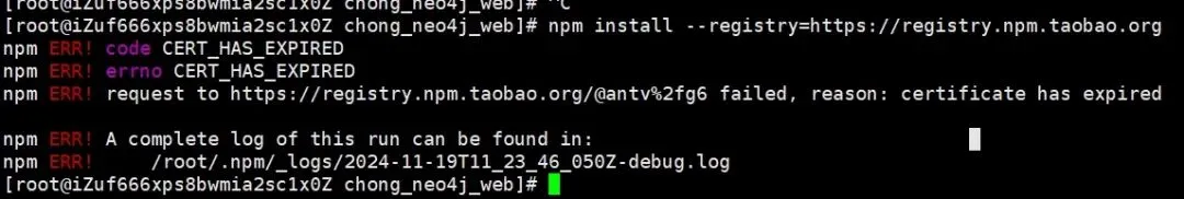 npm ERR! request to https://registry.npm.taobao.org/@antv%2fg6 failed, reason: certificate has expired