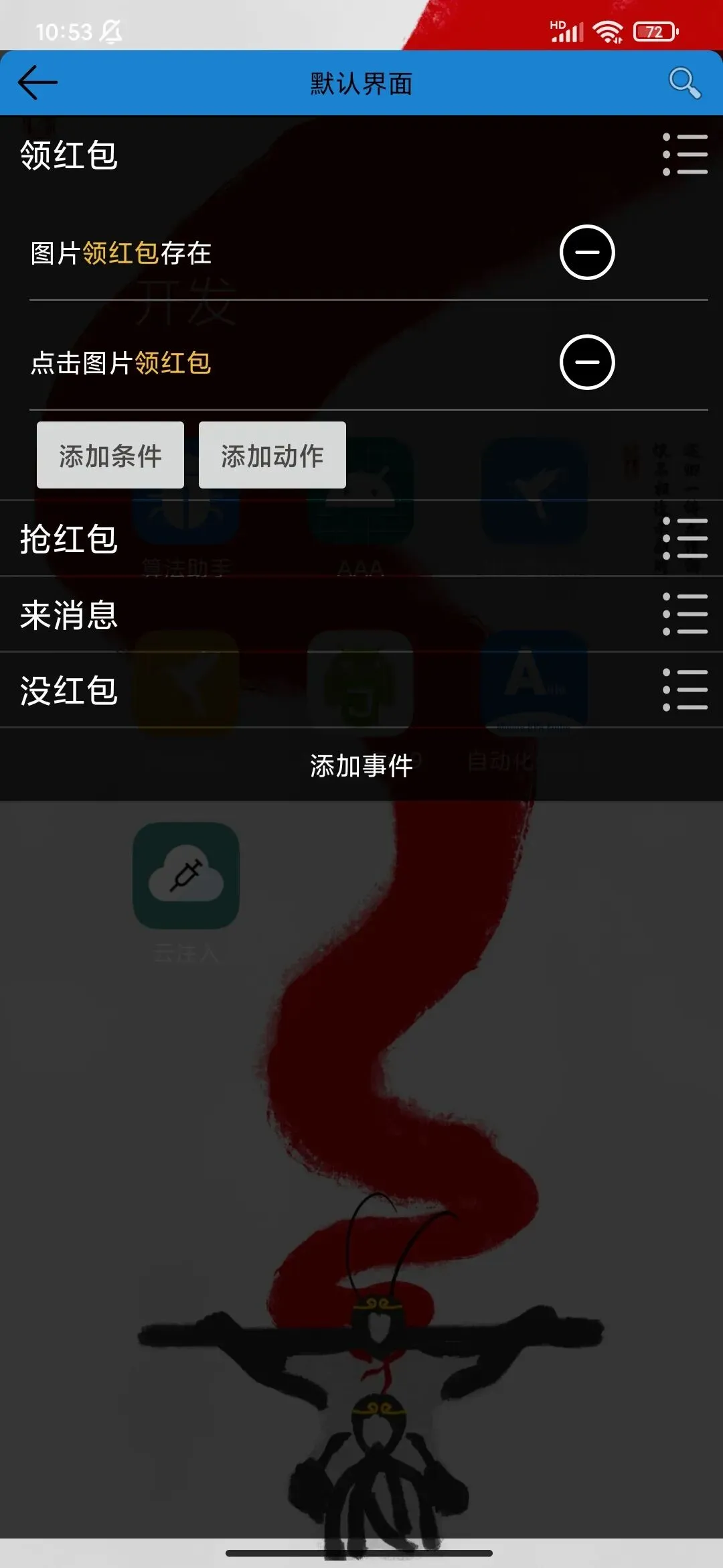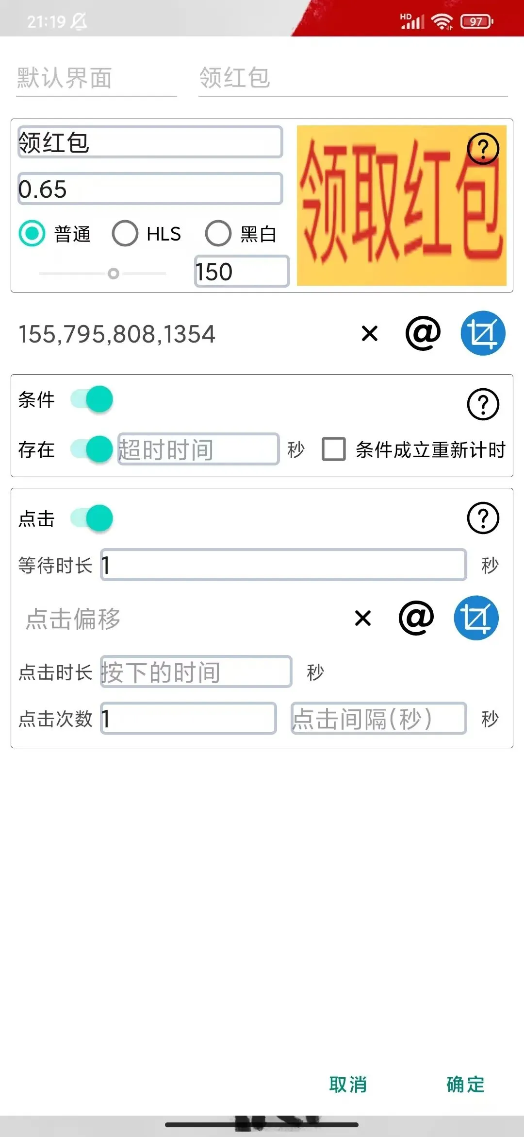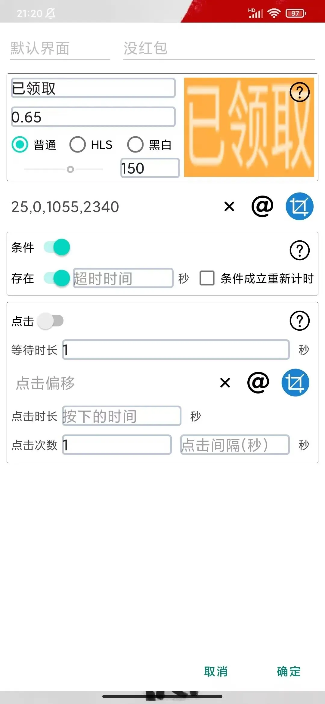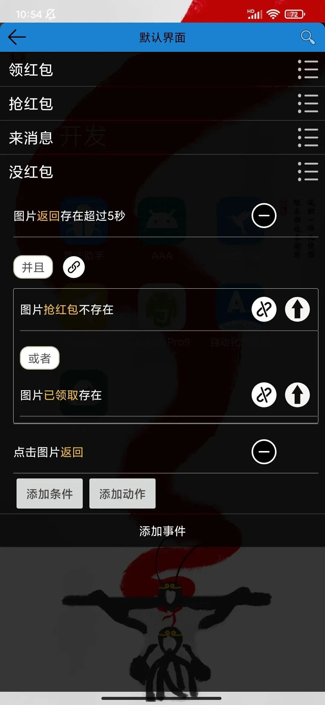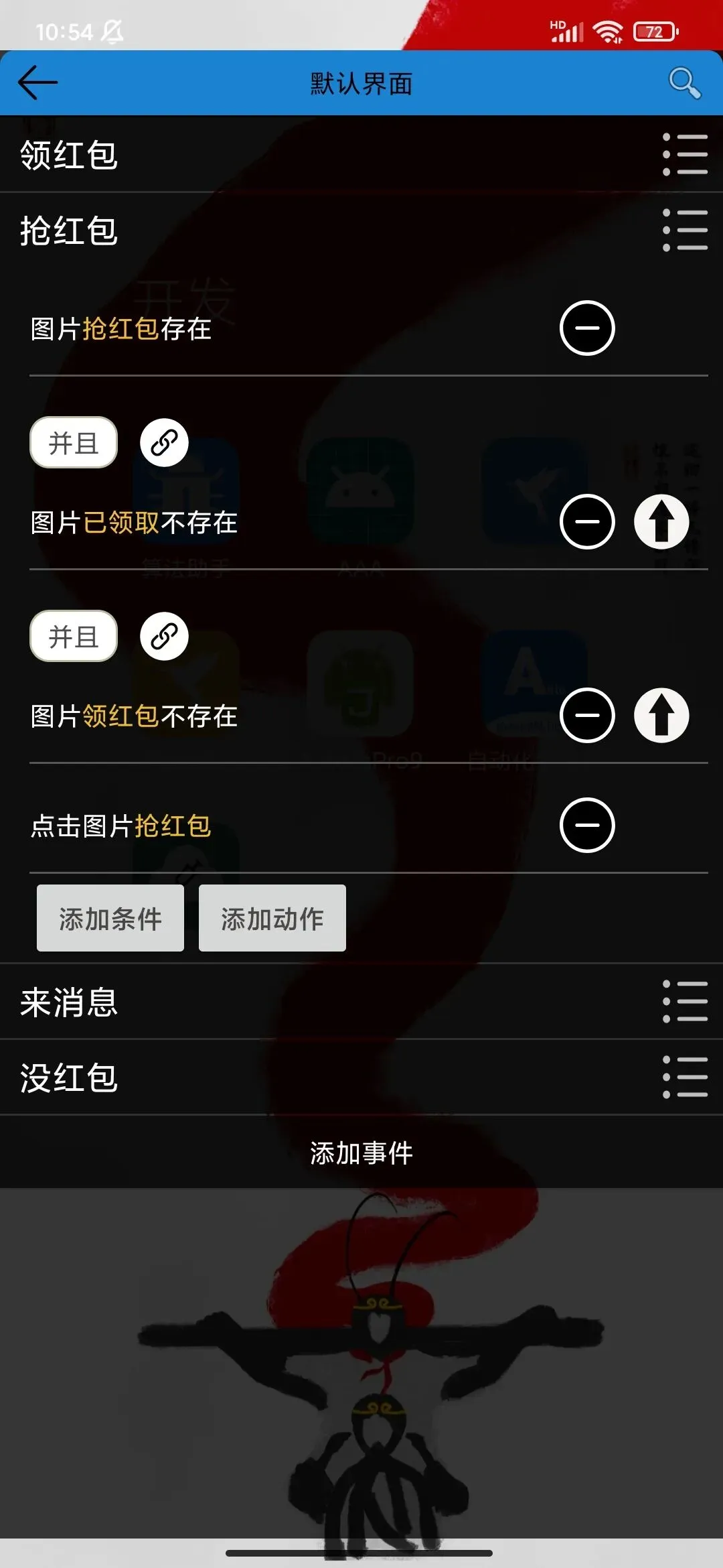 其中点击返回的条件是必须存在的,但如果只有这个条件,那么它就会刚进来就点击返回退出,不管你有没有红包那么就需要联合多个条件,比如这里崽崽就用到了组合条件,已领取存在在这个事件中,脚本的意思是,图片“返回”存在,并且条件组中,图片“抢红包”不存在,和“已领取”存在其中有一个成立,才执行返回操作就是说在群消息里面,没看到红包,或者红包领过了,才返回消息列表不能一看到红包就点,领过了不用再点,而且点过了准备领取的时候,也不应该再点不然反复只点红包不领,就会一直卡在这里,而红包也没领到条件逻辑直接按上一个事件中理解即可,主要是做一些限制条件的处理在这个事件中,就不需要做什么限制条件了,因为在前面的基础上,同一个红包不会多次触发,而且一个红包领取本身也只能领一次无论是QQ、微信,还是像我们在玩的这一类聊天室抢红包的,其实都可以按照这一套逻辑和开发思路去开发脚本而本期内容的重点在于理解多条件判断,了解如何通过多个条件去限制脚本的执行逻辑什么条件是必须成立的,什么条件是只需要存在一个或者什么条件是必须不能存在的学会并理解这款抢红包的脚本开发后,市面上80%的脚本需求,基本上都可以去尝试开发了关于多条件判断,崽崽的心得是,自己在模仿开发的过程中,每写一个条件就运行一次当然,只做完上面的主要运行逻辑其实还是不完全够的,这要在测试过程中去做一些额外补丁领完红包后还需要关闭领取,但这个事件对崽崽来说不是脚本的主要运行逻辑所以崽崽选择放到了通用事件中,当然这个事件也可以和四大事件放到一起,放到最下方即可本期技术分享至此结束,欢迎进我们的发布群,已经进过1群的就不要进这个2群了哈,发布的项目都是同步的脚本开发工具下载路径:陌影阁工具箱→常用工具→脚本编辑器