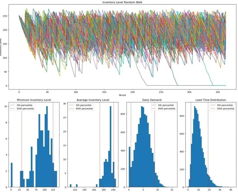 库存规划类似赌局:企业将有限资金投入库存,期望快速周转获利。但库存滞销或报废将导致损失。模拟相当于免费运行数千次“轮盘旋转”,量化策略风险。