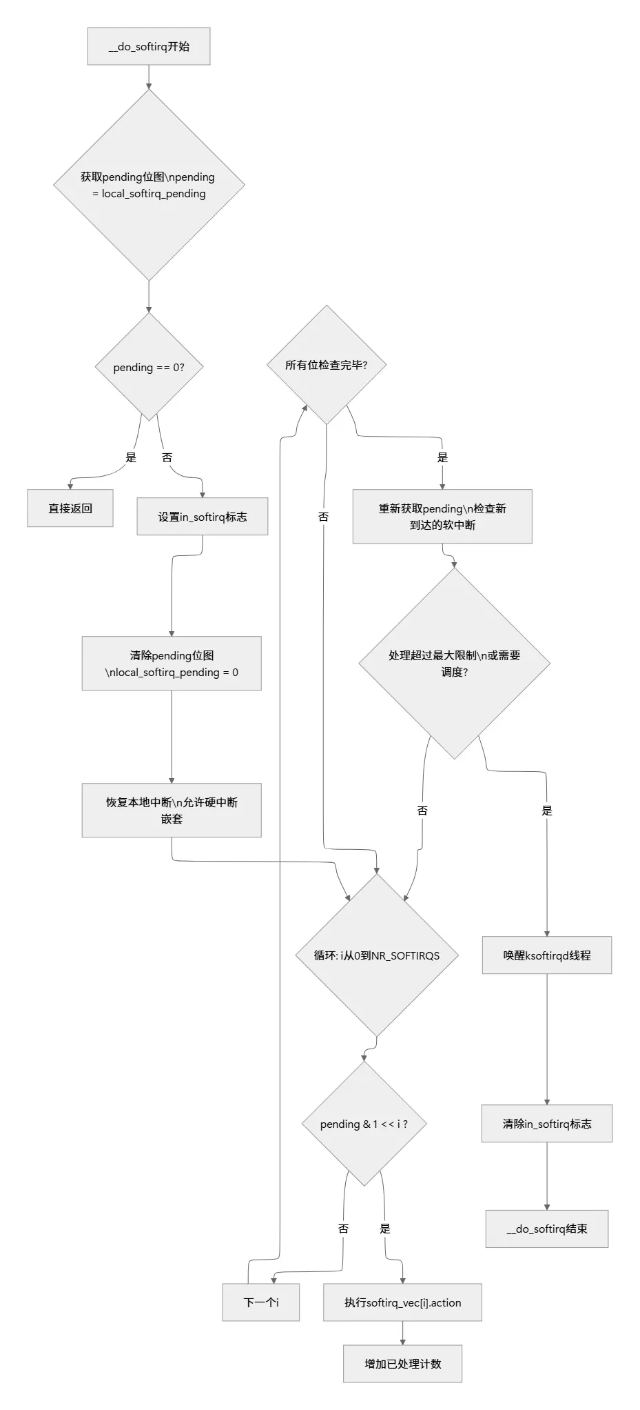 每个CPU都有一个__softirq_pending位图, 这是软中断系统的**"待办事项清单"**: