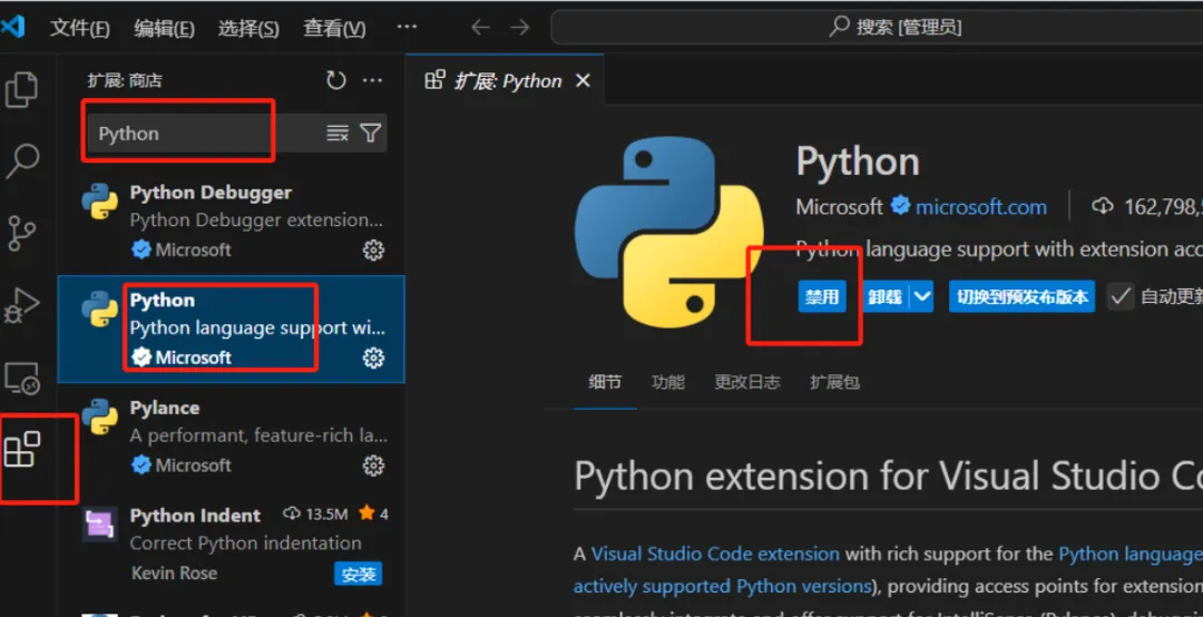 还是在 VScode 的扩展商店里,搜索python,同时也把 Python 支持插件装上。