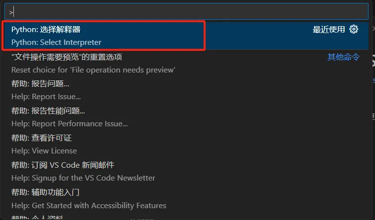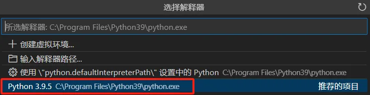 一样还是在 VScode 的扩展商店里,按键盘上的Ctrl+shift+P键,出现python解释器后,选择你本地安的python版本。
