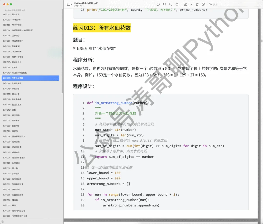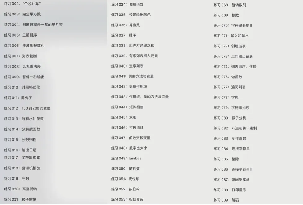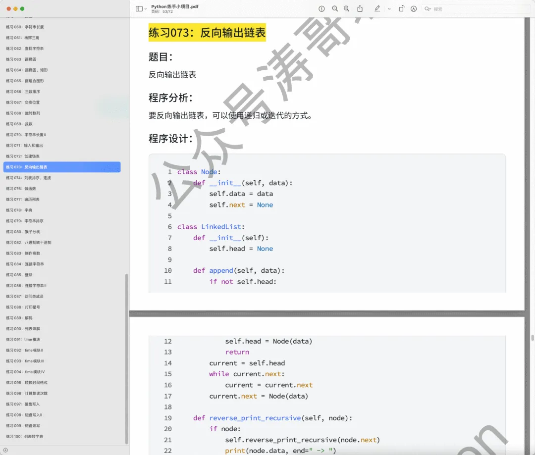 所以,应大家的需求,我们为大家搜集了一份Python从入门到进阶的实战案例合集,总共100个,70多页。