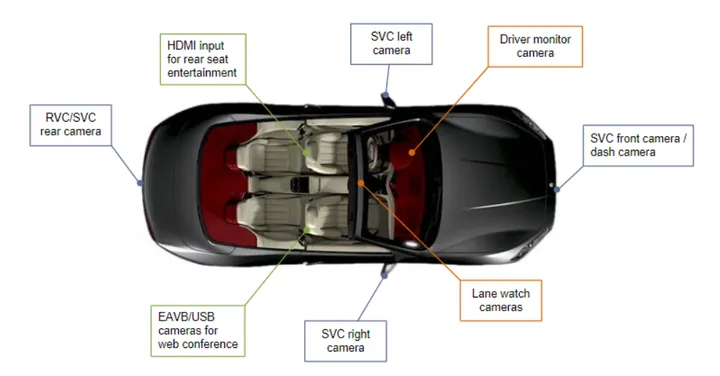 EAVB/USB cameras for web conference | 视频会议摄像头:用于车内视频通话、远程会议的后排娱乐系统输入设备 | 车内视频会议、远程办公、家人朋友车内视频通话 | RGB相机(网络摄像头) |