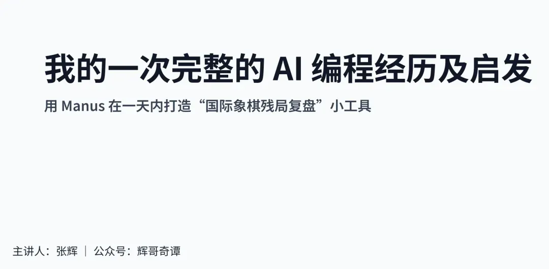 这期语音,正是这个判断背后的一次真实实践复盘。元旦假期,我用 Manus 等 AI 工具,完整走了一遍从需求提出、方案设计,到代码实现和结果验证的全过程,解决的是一个非常具体的问题:基于国际象棋棋局截图,完成残局复盘。整个过程耗时 1 天,消耗约 3 万 Manus 积分,折合约 1000 元人民币。和传统人类开发所需的时间、沟通与协作成本相比,这次实践让我直观感受到:个人完成完整研发闭环,已经成为现实。