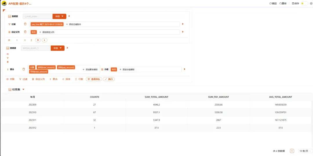 支持可视化配置查询API接口,后端自动生成SQL执行
