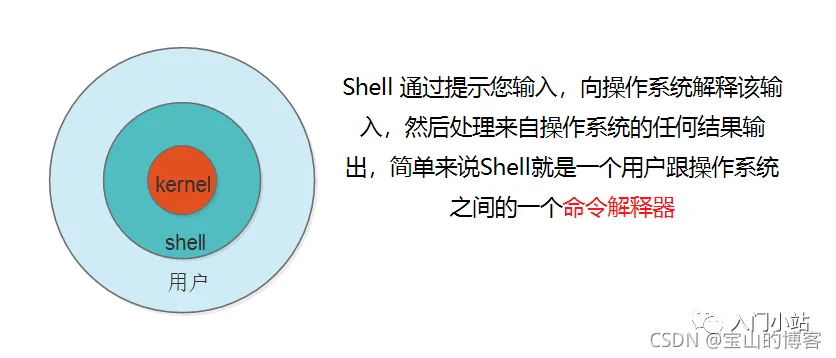 Shell 通过提示您输入,向操作系统解释该输入,然后处理来自操作系统的任何结果输出,简单来说Shell就是一个用户跟操作系统之间的一个命令解释器。