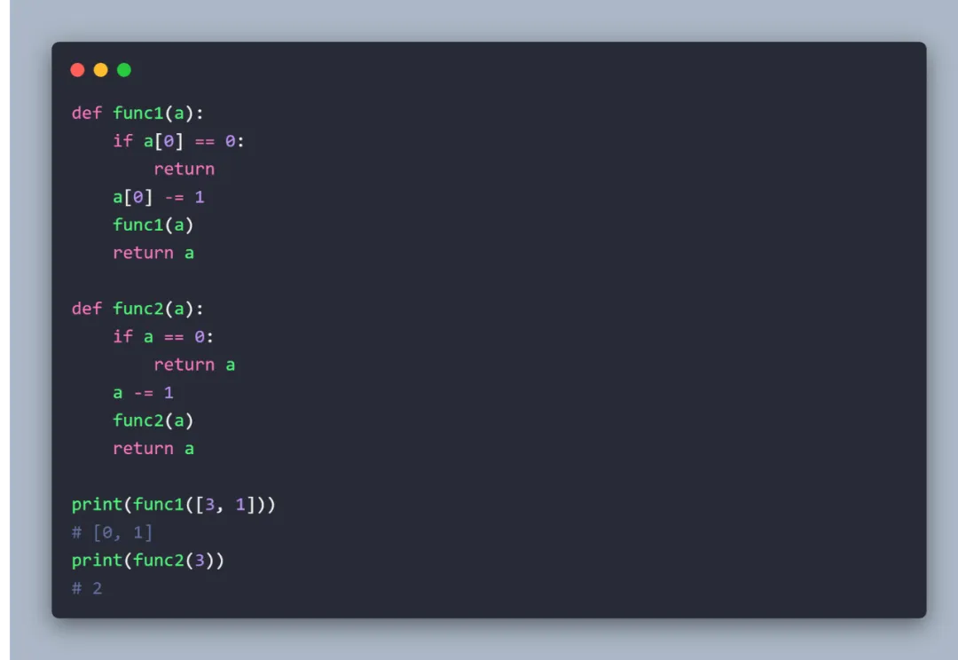 注:可变对象(如list)可以在函数中被改变,而对不可变对象(a -= 1)的重新赋值并不是对值的改变。