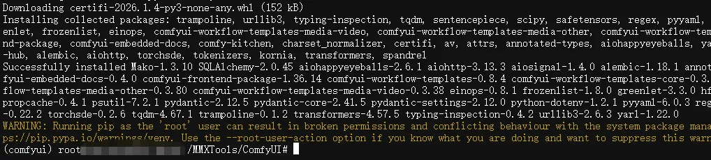 安装主要依赖,直接按照目前comfyui官方主页最新的依赖