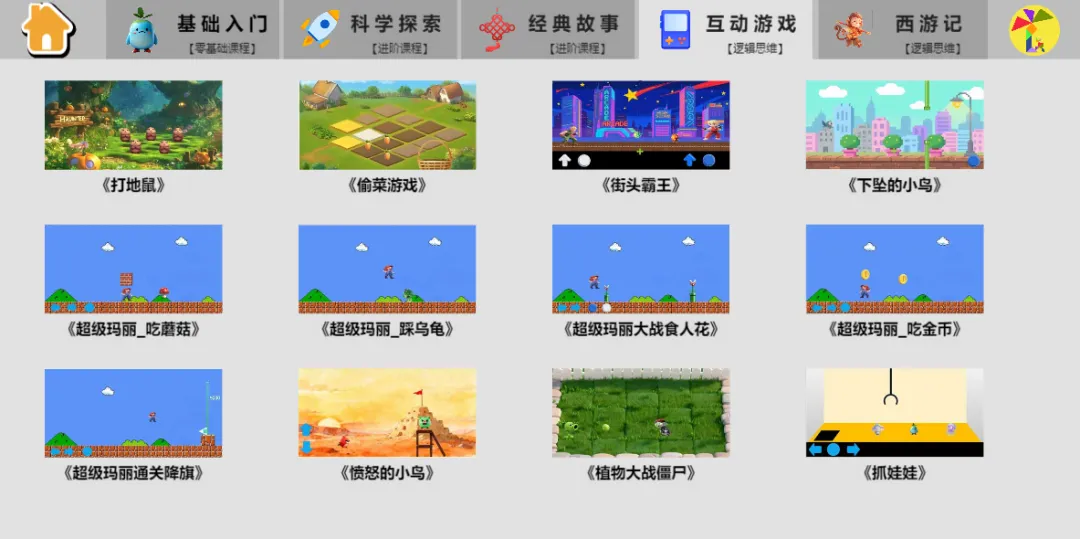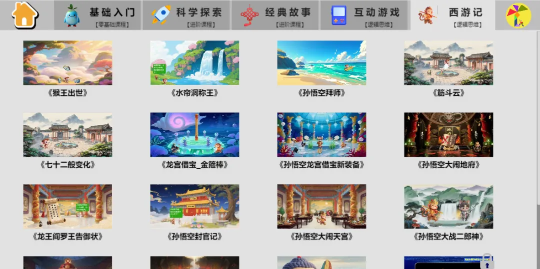 进入「开启编程」界面,丰富的课程资源让人眼前一亮,软件精心打造五大课程系列,兼顾知识性与趣味性,满足不同孩子的兴趣偏好:基础入门系列:从最基础的编程逻辑入手,循序渐进教学,帮孩子建立编程思维,适合完全零基础的孩子。科学探索系列:结合科学常识设计编程任务,让孩子在编程中探索科学奥秘,实现知识与技能双提升。经典故事系列:将经典故事与编程结合,孩子在还原故事场景的过程中学习编程,兼顾文学素养与逻辑能力。互动游戏系列:以趣味游戏为载体,让孩子在游戏玩乐中练习编程技巧,告别枯燥学习,越学越上瘾。西游记系列:依托经典IP设计专属课程,熟悉的角色与剧情能快速吸引孩子注意力,让编程学习更有代入感。 每个课程都配有专属动画图片和清晰名称,孩子只需点击图片就能进入对应编程界面。遇到疑问时,点击右侧问号按钮,会即时弹出课程编程PPT图片,方便孩子对照学习、查找知识点,点击小叉即可关闭; 点击播放按钮,确认允许后就能观看本节配套视频课程,教学与编程自由切换,边学边练效率更高。🎁 个人中心:积分轻松领,免费学不停