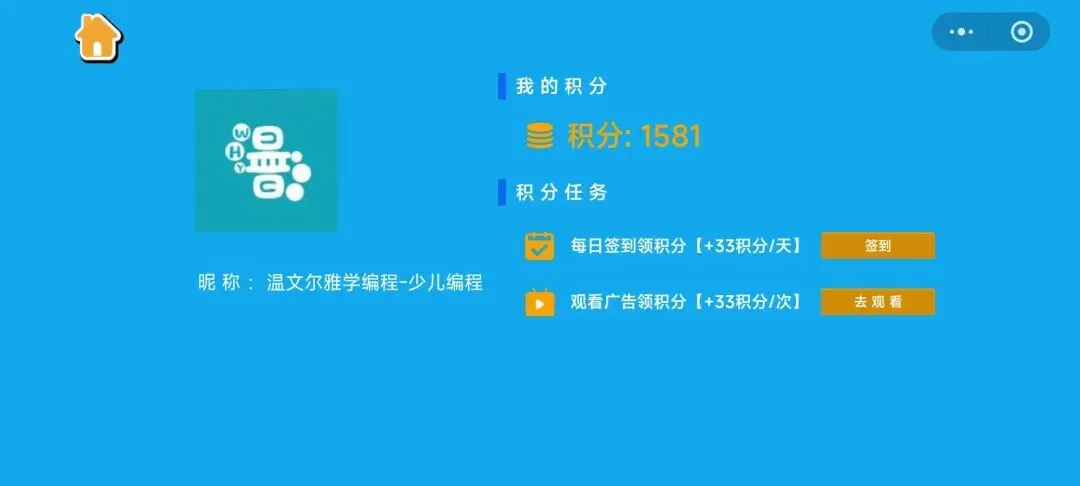 软件完全免费开放,仅通过积分机制规范使用时长,积分获取方式也十分简单:在个人中心界面,每日签到、观看广告就能轻松领取积分,无需额外付费。 每个课程进入一次并使用一小时,仅消耗固定积分,凭借日常积累的积分就能满足孩子持续学习的需求,真正实现零成本学编程。💡 互动留言:你的建议我们都重视