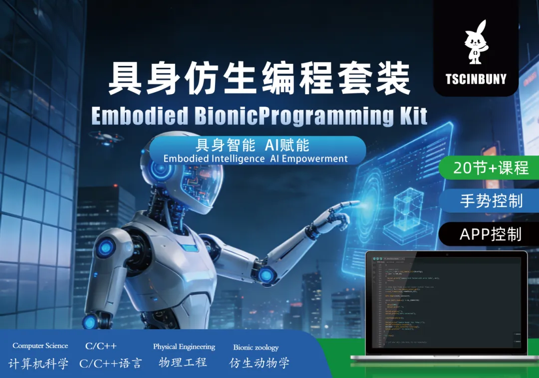 仿生机器人搭建 +“C/C++ 文本编程”,适配专业研发、创客项目,直接对接前沿技术,为未来就业以及科技发展助力。