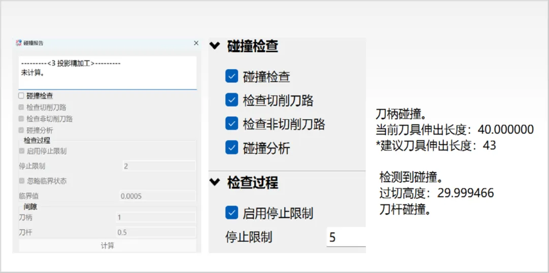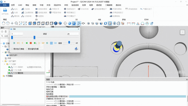 QJCAM.Expert集成智能碰撞检查功能,可在编程阶段快速验证刀路安全性。检查结果直观显示在信息栏,提供多种检查选项,能够精准分析碰撞位置并给出针对性处置建议,从源头规避超程、干涉等加工风险,降低试切成本与工件报废率。