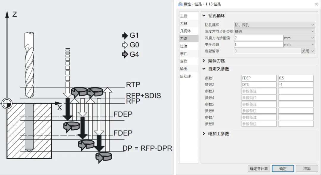 自定义钻孔循环参数