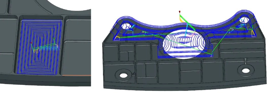 ✅型腔粗加工:最为常用的3D零件开粗加工策略,智能识别加工区域,自动避让小区域并修剪刀路,优化大刀开粗效率;