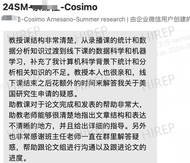 “教授课结构非常清楚,补充了我计算机科学背景下统计和分析相关知识的不足。教授本人也很亲和,线下课结束之后花额外的时间来解答我关干美国研究生电请的疑惑。