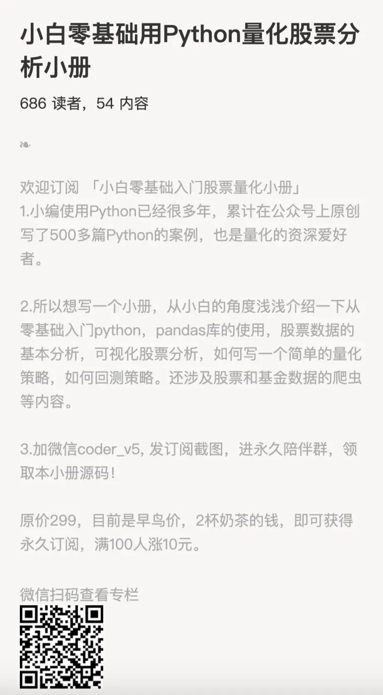 另外下面是一个量化小白的入门小册,有兴趣的可以看看,合适了再下手哈!买了之后有我们专门的量化交流群可以讨论。