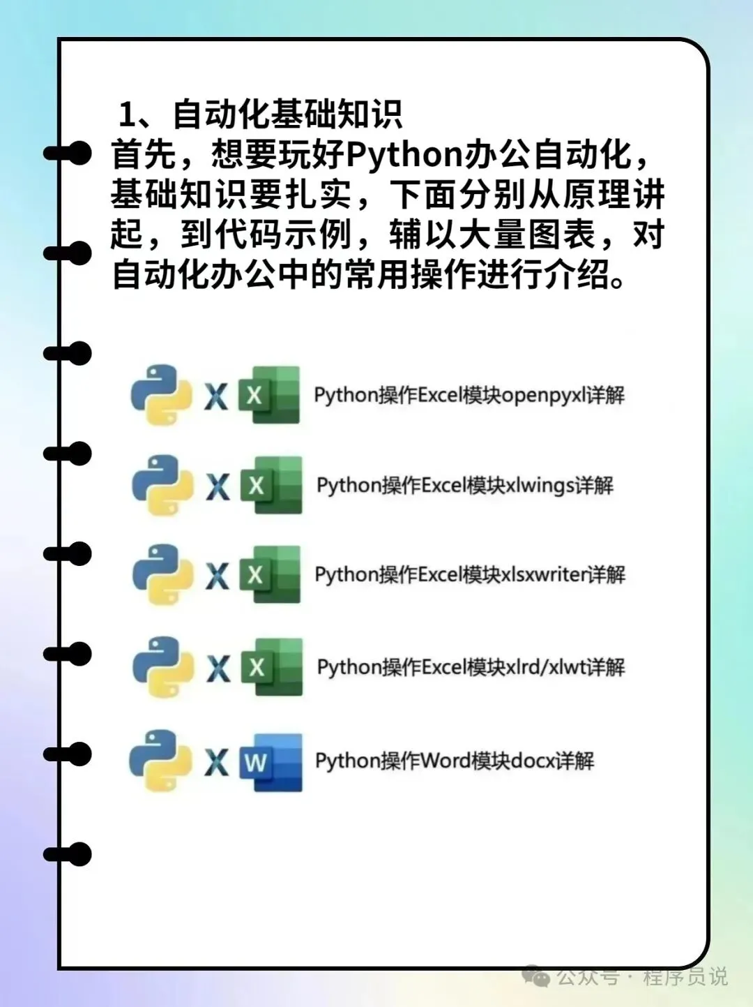 首先,想要玩好Python办公自动化,基础知识要扎实,下面分别从原理讲起,到代码示例,辅以大量图表,对自动化办公中的常用操作进行介绍。
