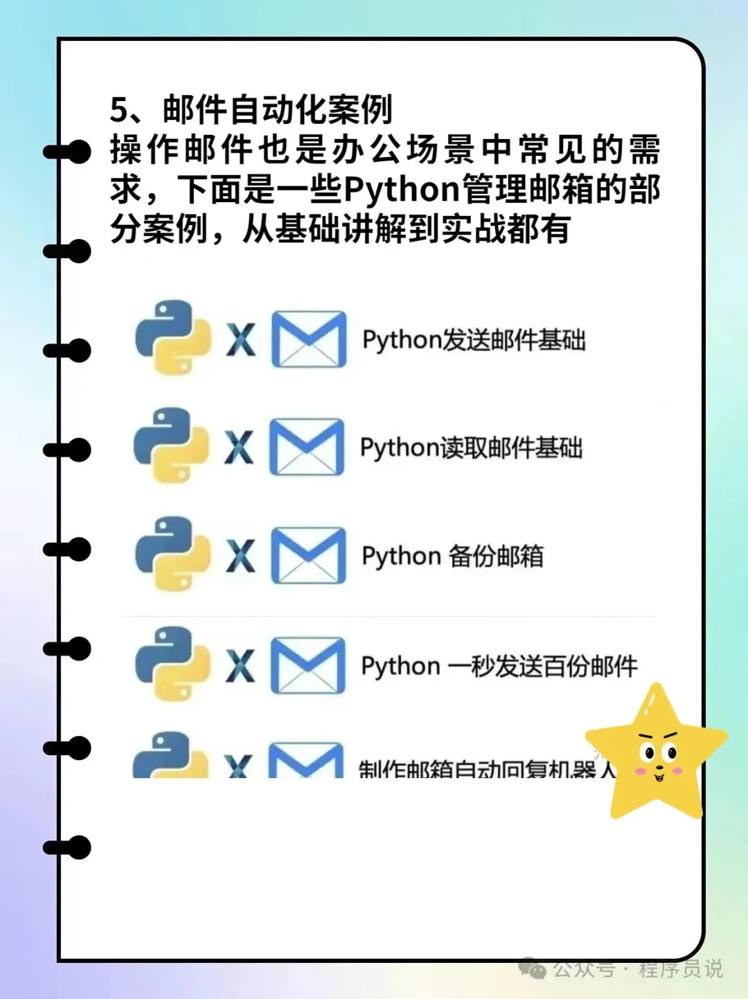 操作邮件也是办公场景中常见的需求,下面是一些Python管理邮箱的部分案例,从基础讲解到实战都有