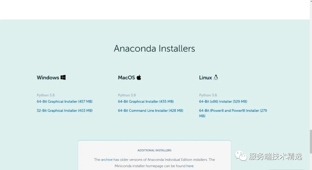 2. 根据自己的设备类型 (Mac/Windows),选择合适的安装包版本。无论 Windows 还是 Mac, 都选择 Graphical Installer,它代表图形化的安装器,之后更易于使用。
