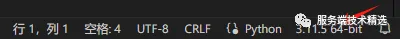 保存之后,如果 VS Code 识别到 Python 文件,我们上一步安装的 Python 插件就会开始工作,寻找本机的 Python 环境,结果会展示在下方的状态栏上。