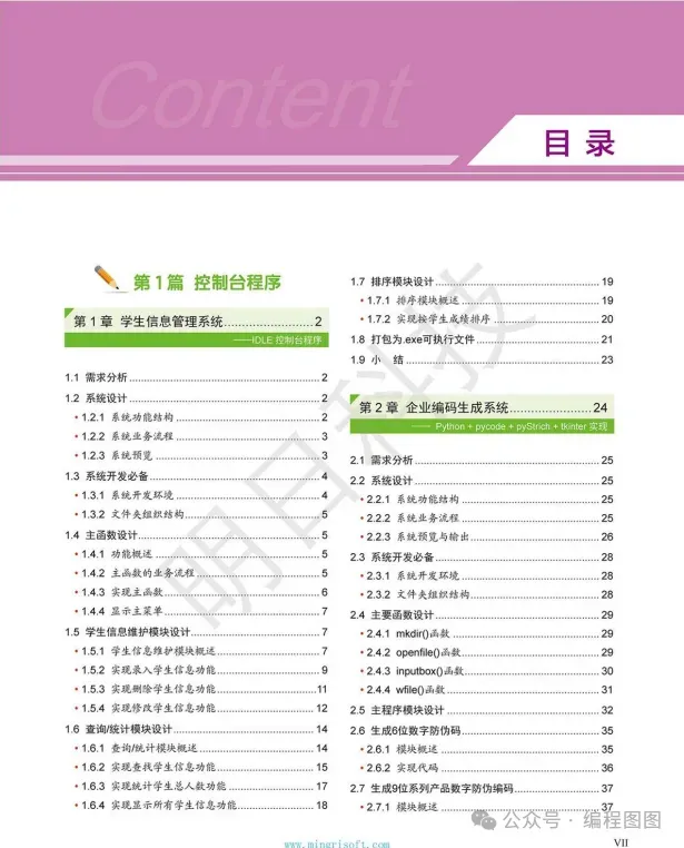 《Python 项目开发案例集锦》 一书从入门学习者的角度出发,开发了 8 个开发方向、23 个项目,循序渐进地让读者在实践中学习,在实践中提升实际开发能力。