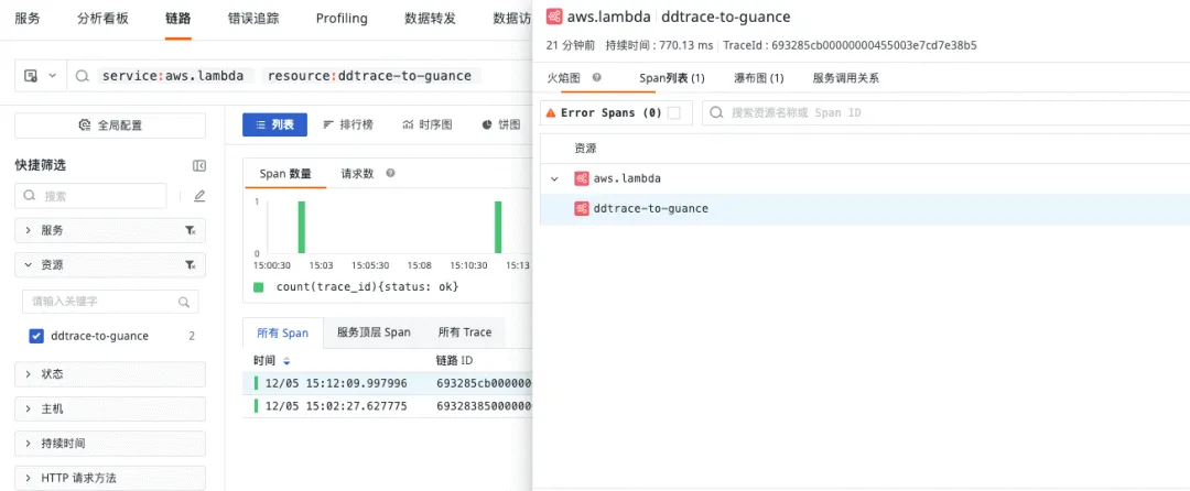 本文介绍如何通过 Lambda 服务接入 DDTrace 组件实现链路数据采集并上报至观测云。