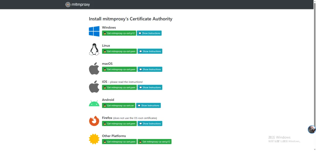设置成功后,登录:http://mitm.it/