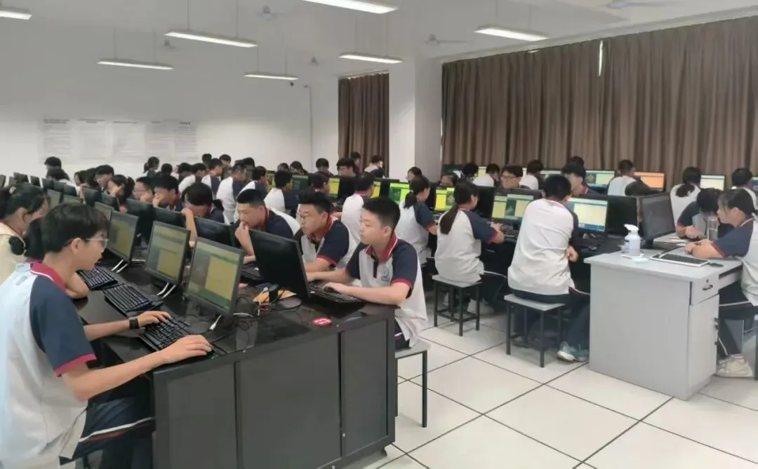 从2025年8月开始,作为刚刚被我校录取的高一新生,112名学子主动放弃假期时光,扎根学校机房,在周南、杨荣老师的指导下,将对科技的热爱融入每一行代码、每一次调试。