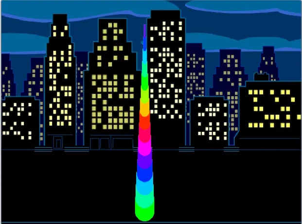 (3)绘制如下图所示的彩虹灯柱,高度自定义,不超出舞台;