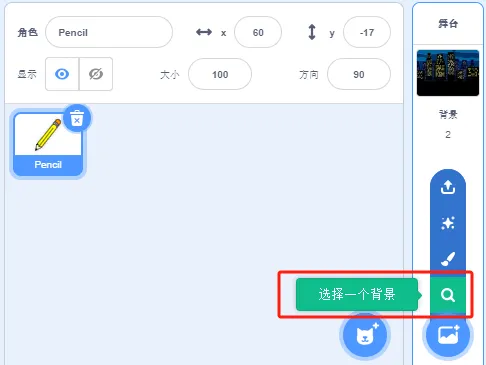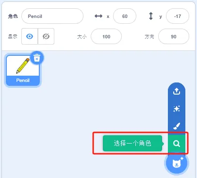 删除小猫角色,添加角色Pencil。