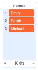 names = [‘Emily’,’Sarah’,’Michael’]【输入样例】