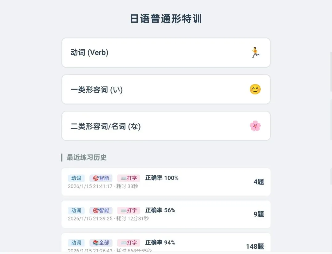 为了更好地帮助练习动词变形,我开发了日语普通型特训工具: